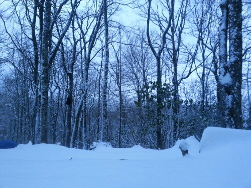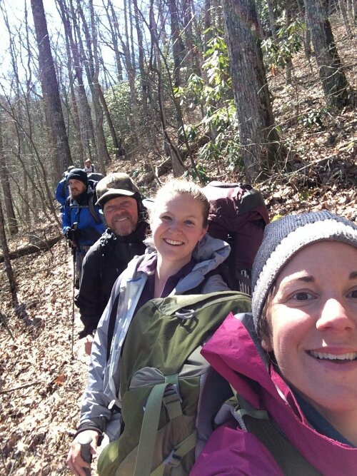 The next couple days warmed up a bit, but the snow stuck around and the wet weather was relentless. We took a short day and split a couple cabins at the NOC, which is a perfect riverside oasis in the middle of the mountains, then pushed through a few days of tough terrain to Fontana.