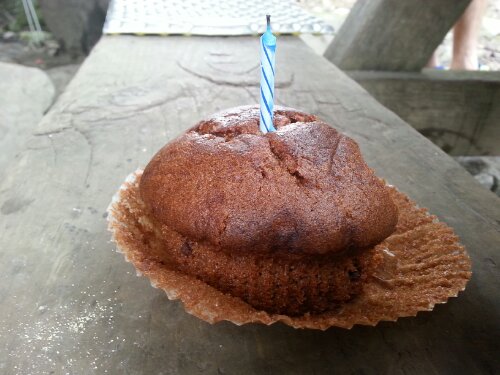 But we made it to the shelter in one piece and mostly dry, and that night Tank pulled a giant chocolate muffin from his pack as a surprise for my birthday. He’d hiked with it for two days since Damascus and somehow managed to keep it intact. When every ounce in the pack makes a difference, that kind of gesture means a ton…he even brought a candle. And the muffin was delicious. I had every intention of sharing it with the others around the shelter until I took my first bite and immediately scarfed down the rest.