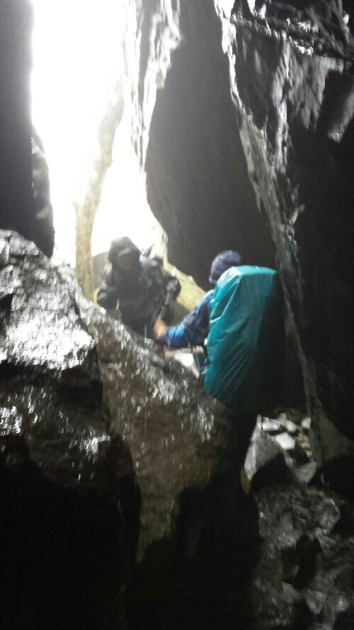 I would have loved to be able to enjoy the views there, but the combination of the grassy highlands, the rock formations (even a full-on rock tunnel called Fatman Squeeze) and the dense fog made me feel like I was in Braveheart. I could practically hear William Wallace urging me over the next hill. (No pictures from that section…my phone was buried pretty well to stay dry that day.)