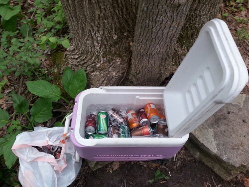 So I was glad to reach the Captain’s at the end of a hard day out of Pearisburg and find a few hikers I had met before: Apple, Dr. Zoom, Rosie and Blue Jay. The Captain lives across a stream from the trail, and he set up a zip line and lets hikers camp in his yard. He also keeps a fridge stocked with sodas on his porch, which is a huge motivation on a long, hot day.