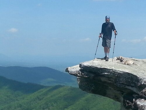 Sunday’s hike included McAfee Knob, considered the most photographed spot on the Appalachian Trail. It was a pretty day, and the trail was the most crowded I’ve seen it since Newfound Gap in the Smokies–which means lots of fun conversations with clean-smelling day hikers about why I’m carrying so much in my pack.
